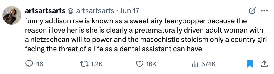 It’s been one of those months that make me sporadically text people that I love them after doomscrolling a little bit too much on Twitter. Switching back and forth from “bisexuals can’t celebrate pride month after June 15,” to “people are being ripped from their families and kidnapped to god knows where,” back to “is Tate McRae a republican?” and “hey, is Israel about to nuke Iran?” is numbing me beyond recognition. At least Addison Rae got us!